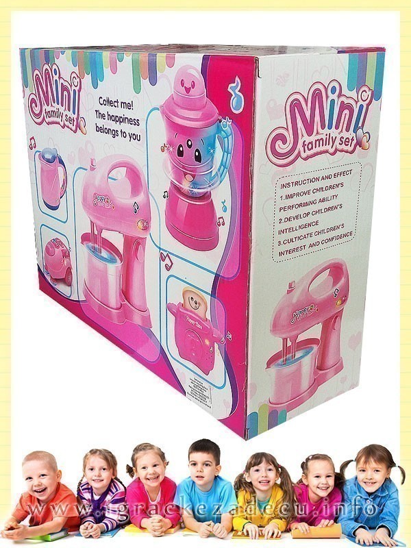 Deciji usisivač i mikser set za kuću sjajna igracka kojom ce se deca igrati i uzivati u igri i pomagati u kućnim poslovima. Ovaj mini set je idealn kod dece uzrasta kada ona odrastaju kroz učenje koordinacije, prepoznavanja zvukova, sagledavanja geometrijskih oblika igračaka i njihovih pokreta. Igračke su napravljene od kvalitetnih materjala.