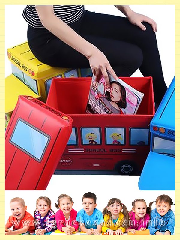 Kutija za igracke tabure za decu – crveni autobus