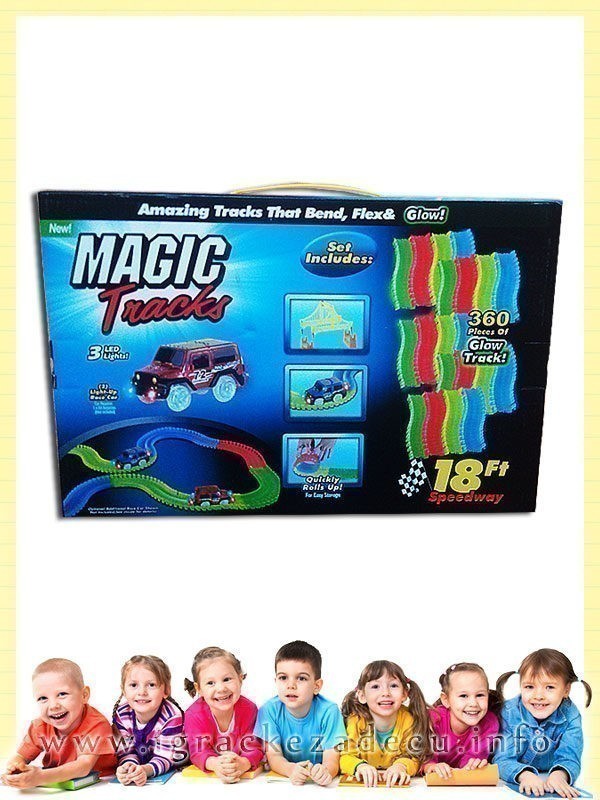 Neverovatno zabavna Magic Tracks postaje magična tek kada ugasite svetla. Za samo par sekundi promenite oblik staze, ugasite svetlo, uključite automobil i igra i uživanje mogu da počnu! Dok led sijaliste na automobilima i neonske boje magične staze svetle, čine da se oko vas stavara magija i pretvaraju svaki prostor u mesto za najluđu zabavu. Dok traje trka, LED lampice automobila trepću dodatnim svetlima, stvarajući pravi magični šou.