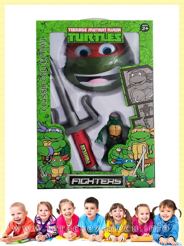 Nindza kornjace Rafaelo lutka, sai bodez i maska je sjajan set za decu koji je namenjen deci koja vole Nindža kornjače. Set sadrzi: